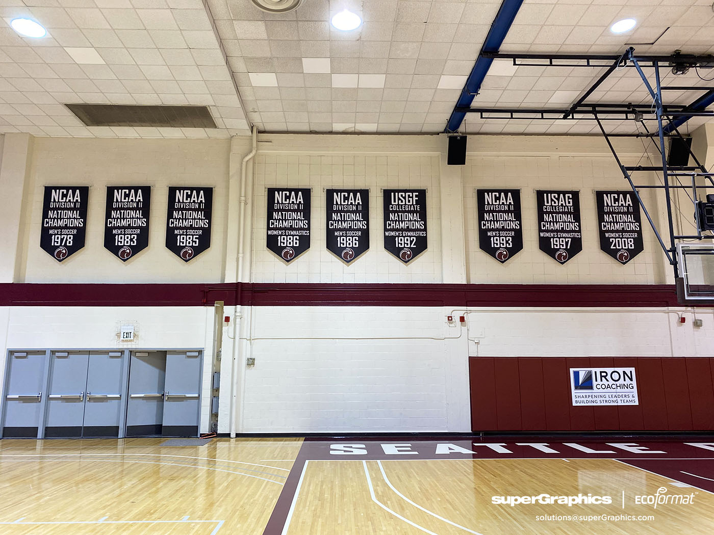 Seattle Pacific University Gym Banners, completed by SuperGraphics.