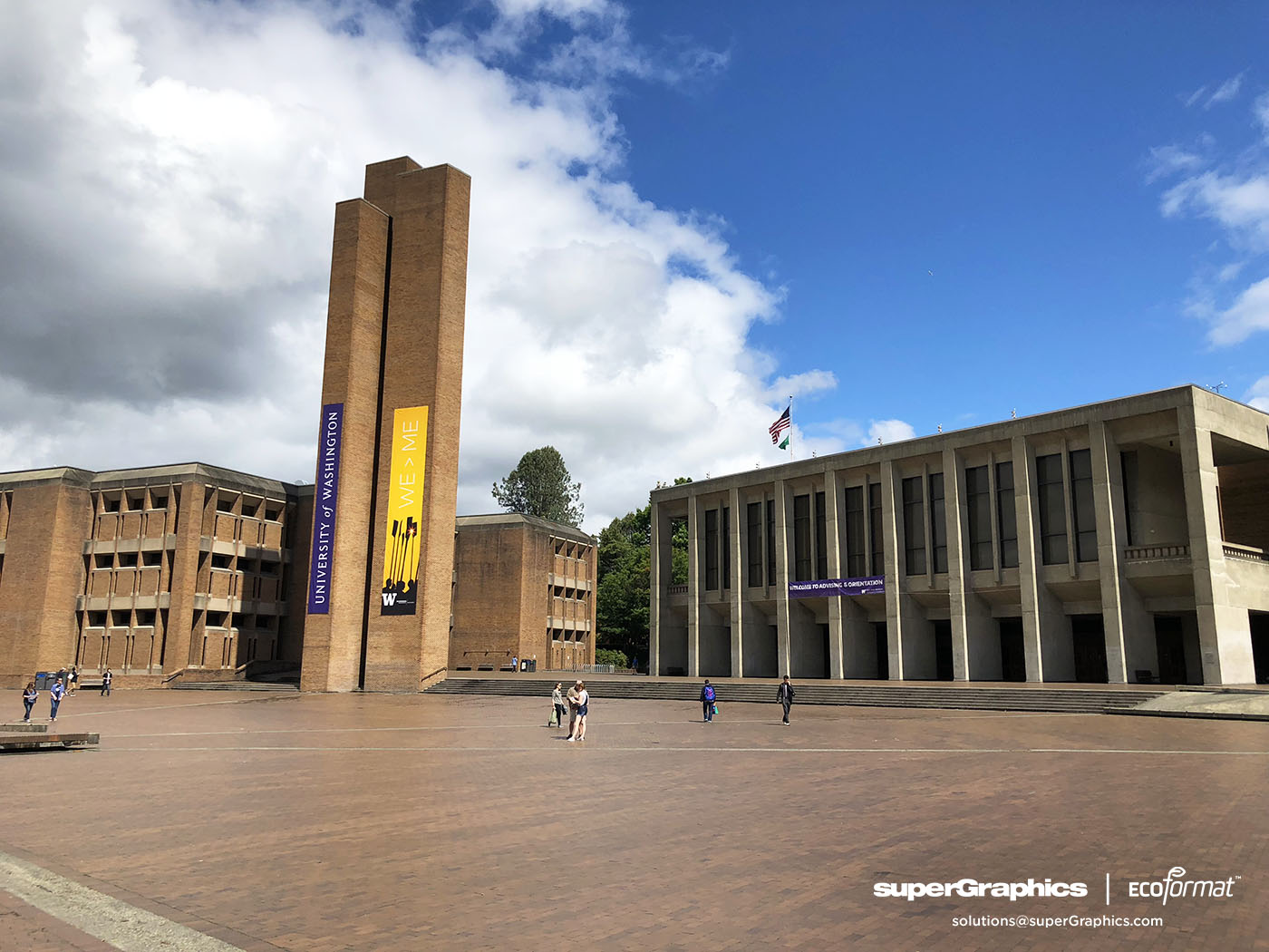 University of Washington Paul G Allen Exterior Banner, completed by SuperGraphics.